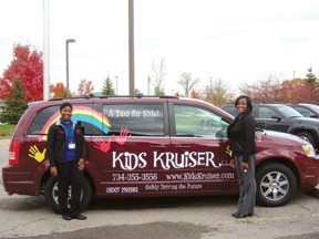 fee. The uniformed drivers chauffer the children in one of the business’ 2008 Chrysler Town and Country minivans. The cars are decked out with vehicle entertainment systems so kids can watch movies on the way. Books are also on board to keep the little ones occupied. You won’t have to worry if everything is running smoothly. Kids Kruiser provides a text notification to parents when their child arrives at his/her destination.