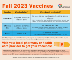 As the time of year approaches where more people get sick from COVID-19, flu, and RSV, the Washtenaw County Health Department is encouraging everyone to update their vaccinations by getting a flu shot and an updated COVID-19 vaccine.