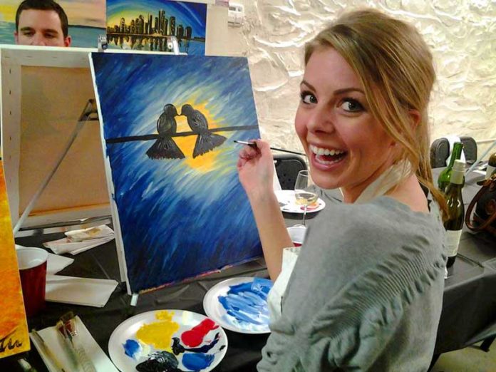 At Paint and Pour, an artist/entertainer walks you step-by-step through replicating one of the featured paintings. The atmosphere is playful and judgment-free. Most classes run two hours, during which there are frequent “sip” breaks. “Our guests can bring in any type of refreshments to help them have a great time—wine, beer, snacks and so on,” says Kerry Sprague, Artist and Assistant Studio Manager. The Studio provides accessories such as cups, plates, napkins and wine openers.