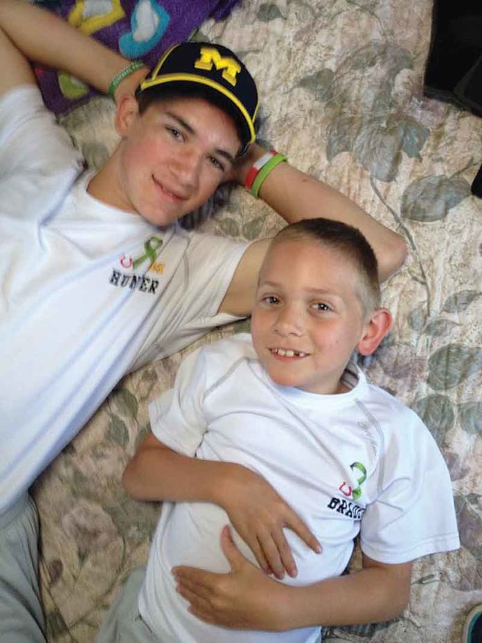 In June 2014, Hunter, 14, carried his brother, Braden, 8, on his back for 40 miles from the Bedford Michigan Junior High School gym to the University of Michigan over the course of two days. The walk represented the daily physical and mental struggles faced by those with cerebral palsy.