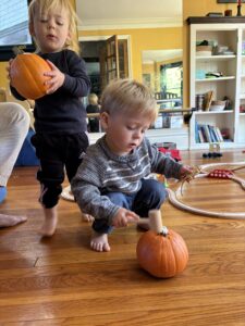 Variations for baby: let the baby whap on the pumpkin. Their hands are the “pounding” implements here!