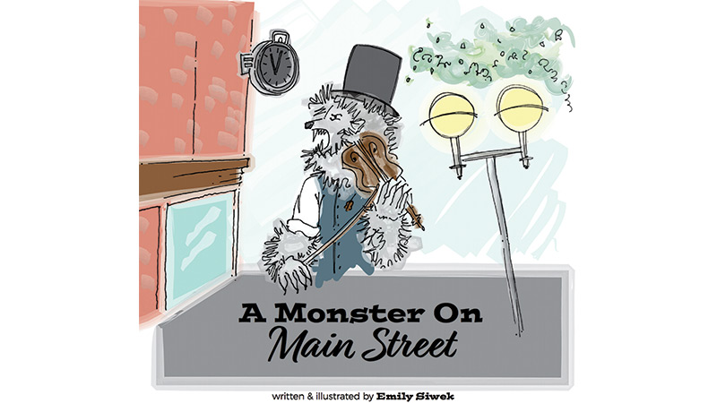 Emily Siwek, author of A Monster on Main Street, wrote and illustrated this already skyrocketing book based on a real local character, Violin Monster, the celebrity busker who dresses in a wolf mask and plays violin for tips on our downtown street corners. He works during the warm weather months and is a favorite with local kids because whenever he gets a tip in his tip pumpkin he tosses his head back and howls to the delight of kids and parents alike.