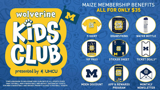 Tickets to the events will still need to be purchased online through mgoblue.com/tickets prior to the event to receive access to the Wolverine Kids Club ticket offers; the Kids Club offers are not available on-site or at box offices.