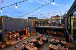 The Detroit Shipping Co. website says that, “The food of a five-star restaurant. The atmosphere of a beer garden. The walls of a shipping container.” It has five food-truck style cuisines, full service bars, a coffee and ice cream booth, a small stage with live events, and picnic table seating.