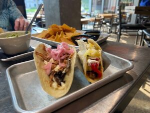 We opted for a trio of street tacos: the I’m a Funghi, the Bob Marley (with pineapple!) and the smoked brisket. These were some of the best tacos we’ve ever tasted (Trust me, we’re taco snobs!).