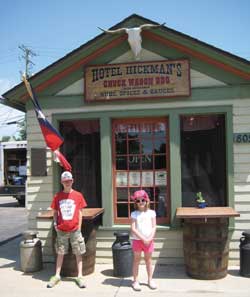 And so our friendly cowboy lunch at Hotel Hickman Chuck Wagon BBQ began. Proprietor Scott Thomas and his crew, all dressed like cowboys, recently welcomed my family of four to his quaint restaurant in downtown Dexter. Open since November, Hotel Hickman rustles up cowboy fare—think smoked meat and sides cooked family-style—every Thursday through Sunday.