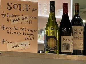 We ordered a couple of favorites from our previous visits, but this time also wanted to try a soup. A sign stated that their popular butternut squash and lemon chicken were both sold out. So, we opted for their roasted red pepper and tomato bisque. A large bowl filled with a beautiful color presented itself in a celebratory manner with two slices of bread. It was creamy and nicely accentuated the vegetable well.