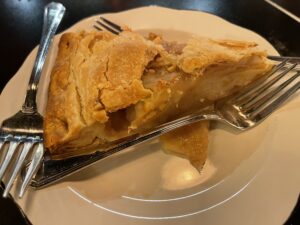 For dessert, we shared a slice of their homemade apple pie three ways. The waiter said he warmed it in the oven for us and we found the crust flakey and the apple interior fruity and nicely spiced.