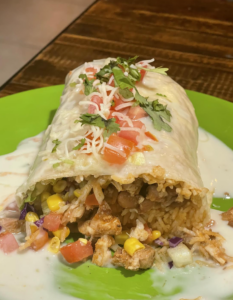 The chicken shwarma burrito has almost a citrusy flavor, and again both Mediterranean and Mexican flavors.