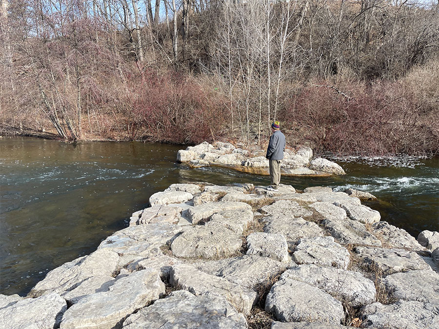 The grasses along the walkway were dried but beautifully textured and caramel colored. Rapids and rocks complement the winter air. We walked for about thirty minutes viewing the serene sights before returning to the restaurant.