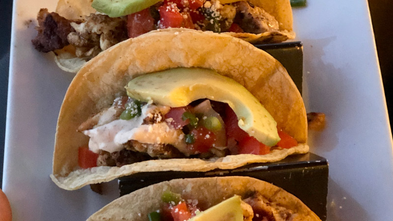 The food menu, while somewhat heavy on pizza and burgers, has a number of kid friendly items. There is no kids’ menu, per se, but many of the dishes lend themselves to a younger palate (pizza, mac and cheese, sliders). They also will prepare buttered noodles on request. We ordered a cheese pizza ($13) and sliders ($10) for the kids, and mussels ($11), gluten-free yellowfin ginger salad ($12), gluten-free tequila chicken tacos ($10) and a hot honey soppressata pizza ($15) for the grownups.