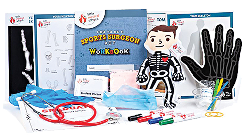 Inspiring imaginative play and health awareness, this Little Medical School ® CLASSROOM IN A BOX offers aspiring sports surgeons a wide variety of hands-on and educational activities. The How to be a Sports Surgeon Kit (a $29.99 value) can be enjoyed multiple times with five separate activities: Lend Me a Hand, Skeleton, Sprains and Strains, Joints, and Tommy John Surgery. Students conclude their activities with a graduation ceremony and diploma. This kit is designed for children (6+) and can be used independently or with adult supervision.