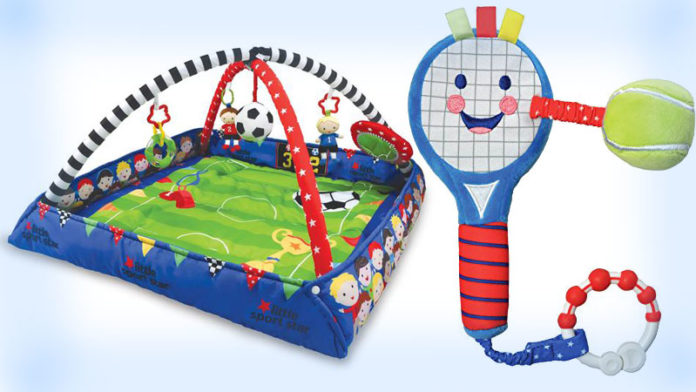 It will be “love” at first sight when your junior Ace plays with a Little Sport Star Tennis Racket Activity Toy. Your little kickers will be shouting “goal” as they develop their eye-hand-foot coordination with this fun-filled soccer activity mat! The Little Sport Star Play Gym Soccer toy is sure to stimulate the senses, with its multiple textures.