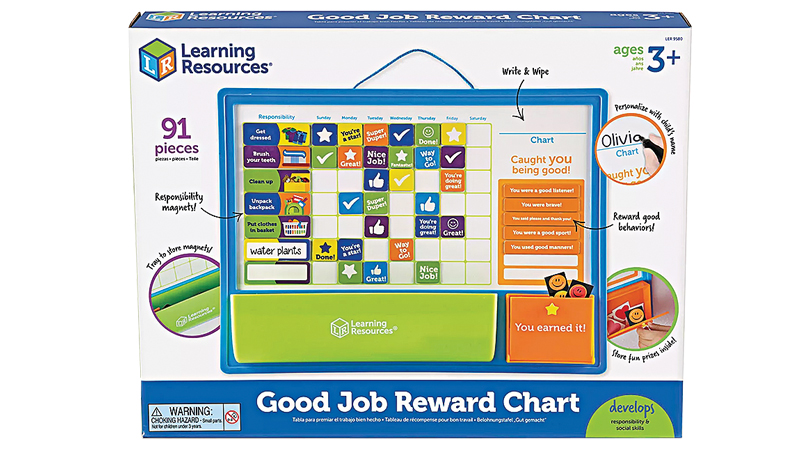 Win a customizable magnetic responsibility chart featuring magnetic tiles and stickers corresponding to common household tasks, from “Make the Bed” and “Help with Dinner” to “Do Homework” and “Brush Your Teeth.” Learning Resources Good Job Reward Chart allows you to pick out the tasks of their choice (or customize your own with the set’s blank stickers), kids and parents can then track daily progress with the set’s positive accomplishment magnets. Age 3+.