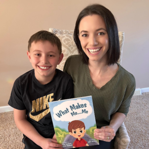 Anne Baldwin with her 10 year old son, Levi, and her book, What Makes Me…Me which is available at Nicola’s Books or on Amazon. Photo courtesy of Anne Baldwin.