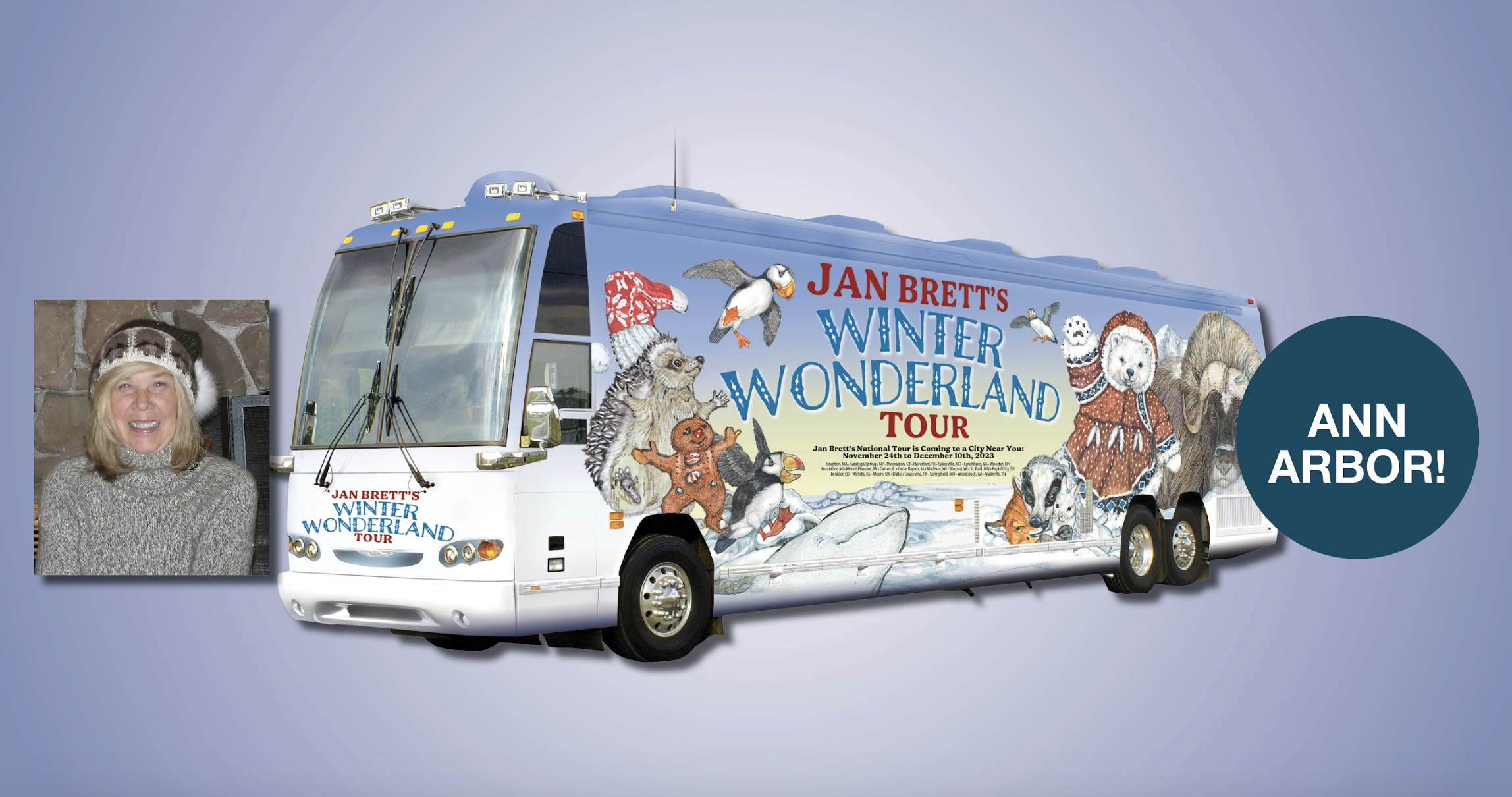 The news that Jan Brett would be bringing her winter wonderlands to Schuler Books in Ann Arbor has caused quite the stir among book lovers. Brett has been creating her distinctive books for over three decades. She first published in 1981 and with over forty-one million copies of her books now in circulation has become a celebrated author and illustrator, renowned for her detailed depictions of animals and settings in children’s literature.