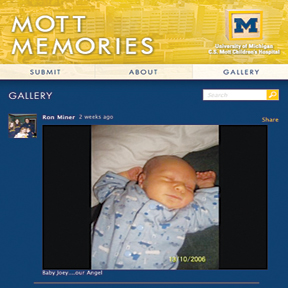A visit to the hospital is a memorable moment for kids and parent alike. But what if you could share those memories with the world? C.S. Mott Children’s Hospital launched a Facebook application Mott Memories, which allows visitors to upload photos and videos of meaningful moments at Mott! Whether it was a special nurse, doctor or a sigh of relief for healthy kiddos, you can document your memory with Mott by visiting www.facebook.com/mottchildren. Memories will be featured in the Gallery portion of the app.