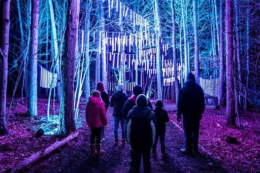 Starting on the 26th of November, Glenlore Trails: Aurora will once again invite guests to explore more than a mile of illuminated forest (which takes about an hour to navigate) that will have transitioned from its Halloween/autumnal decor to a decked-out winter/holiday-themed event with interactive elements, photo opportunities, and new “live experiences.”