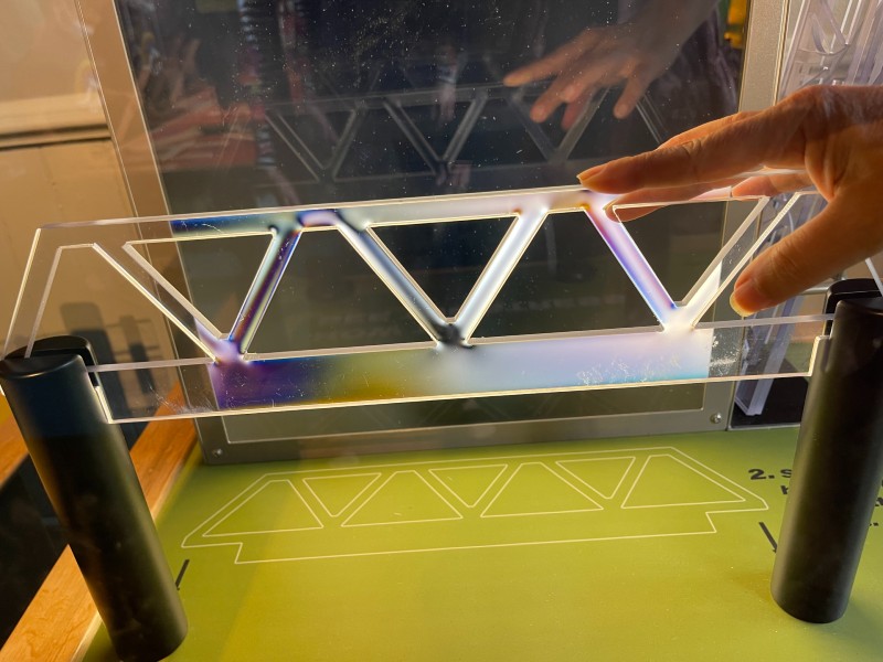 - Shape Stress: Visitors choose from a variety of clear plastic shapes to see how each shape responds to stress using a polarizing filter.